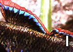 stripe runs dorsally and posteriorly from each orbit to the end of D1 or D2, becoming a row of irregular dark blotches, up to caudal peduncle; these two series of dark dorsolateral blotches may form a pattern of 8-10 saddle-like bars (see Fig. E); numerous small dark brown, pale red and pale blue speckles on snout, opercles and flanks; in young white speckles (instead of dark ones) are present (Takita et al., 1999); scales on opercles may present darker margins; D1 blackish to dark blue with reddish margin in males; D2 dusky with series of dark speckles on rays and a red margin; pectoral fins greyish with red speckles on rays; caudal fin dusky with series of dark speckles on rays; anal and pelvic fins dusky to dark grey distally; pelvic fins dorsally and proximally bluish in males; live colouration is quite variable through its distribution and probably also presents conspicuous ontogenetic changes (see photographs)