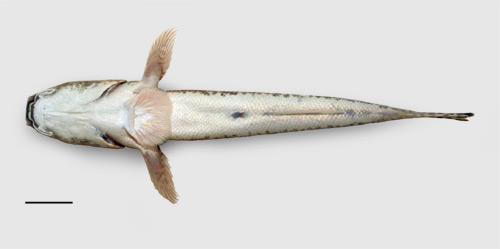 and pectoral fins background greyish, with series of dark brown speckles along rays; anal fin white; pelvic fins ventrally white, dorsally darker